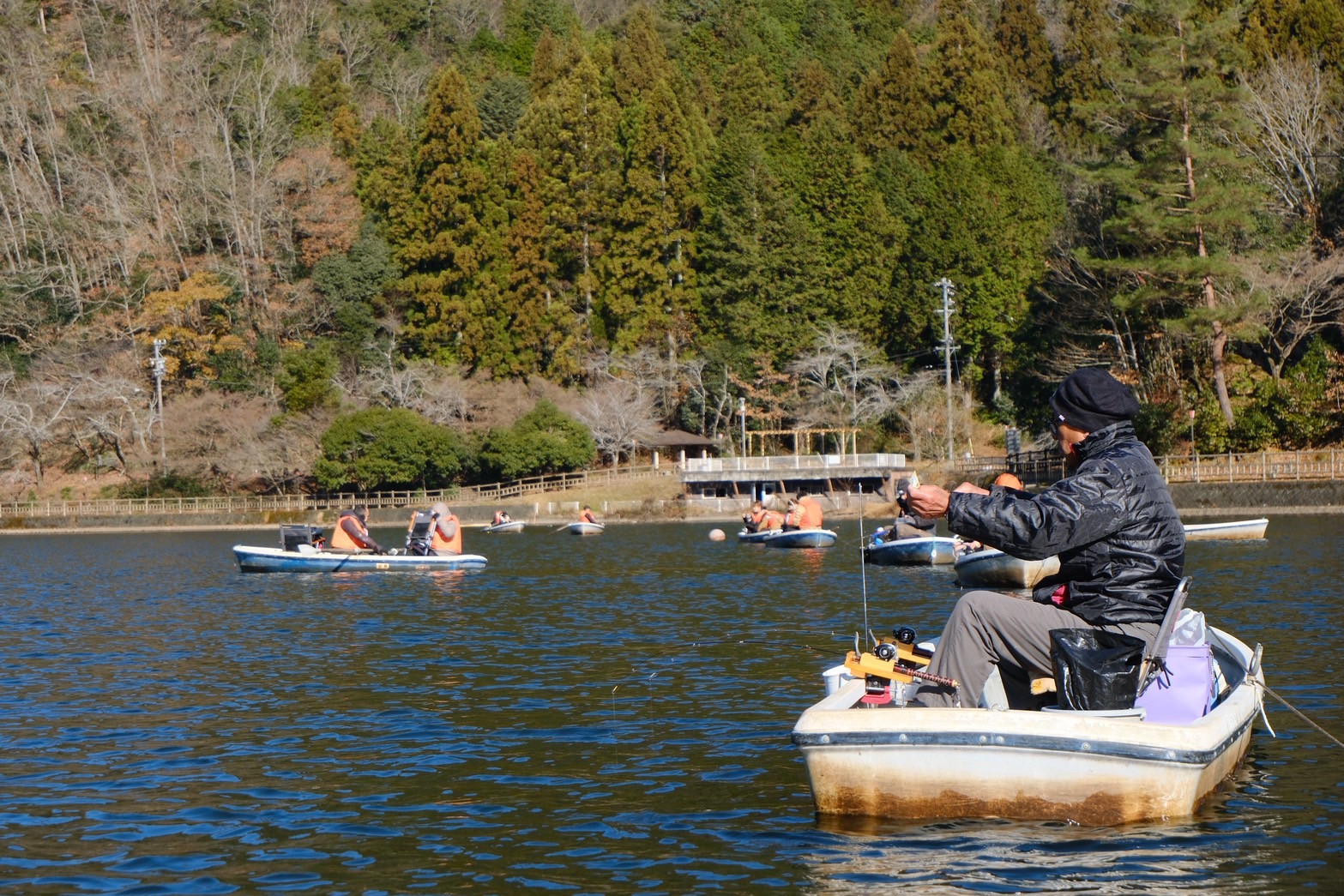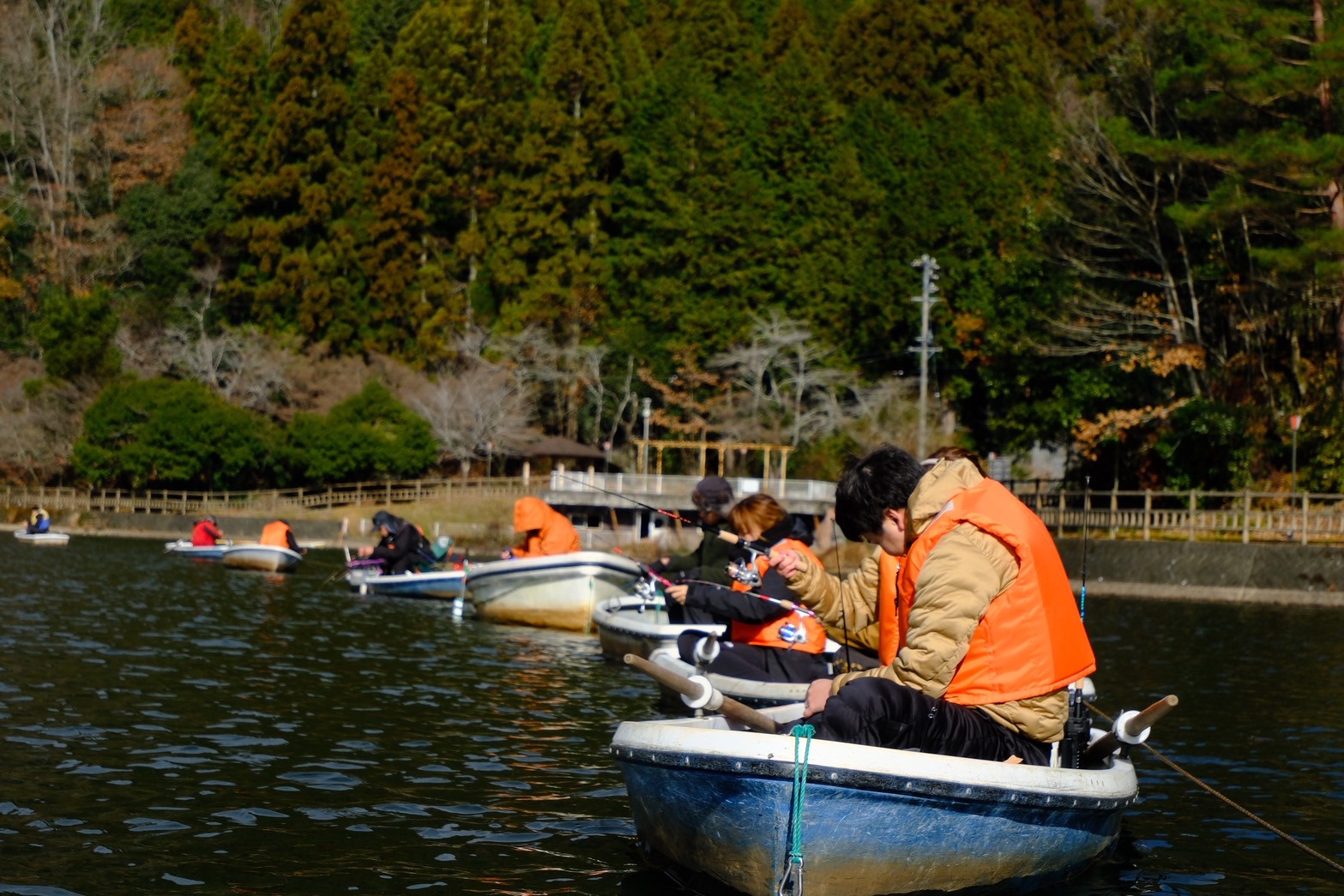 今日の伊自良湖は厳しい冷え込みから始まり釣りのお客様は糸やガイドが凍りなかなか釣り難い朝から始まりましたが日中は穏やかな釣り日和となりました。