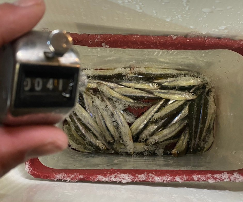 今日の1番大きいわかさぎは、10.5cmでした!!