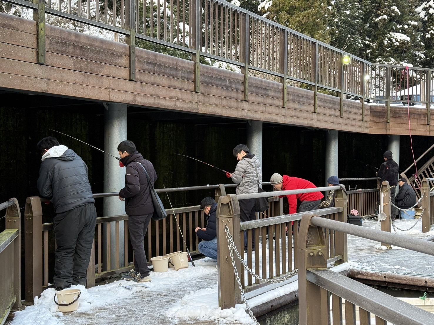 雪の降る中でも皆さん頑張って頂き桟橋も盛り上がりました。
