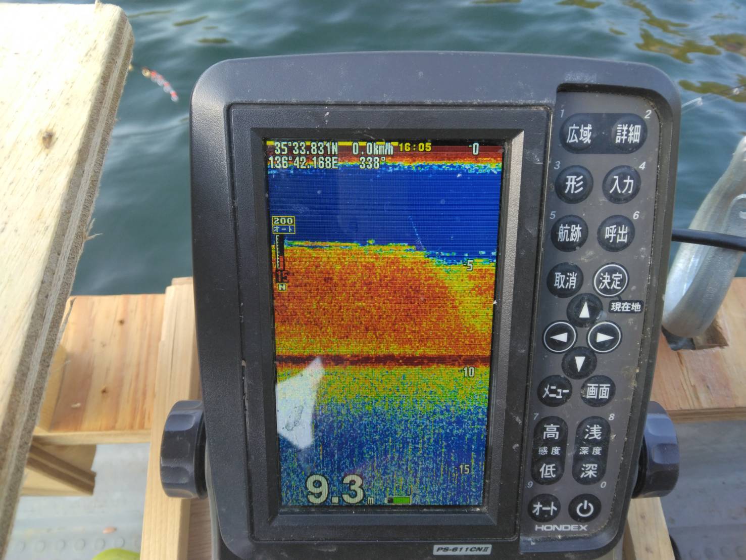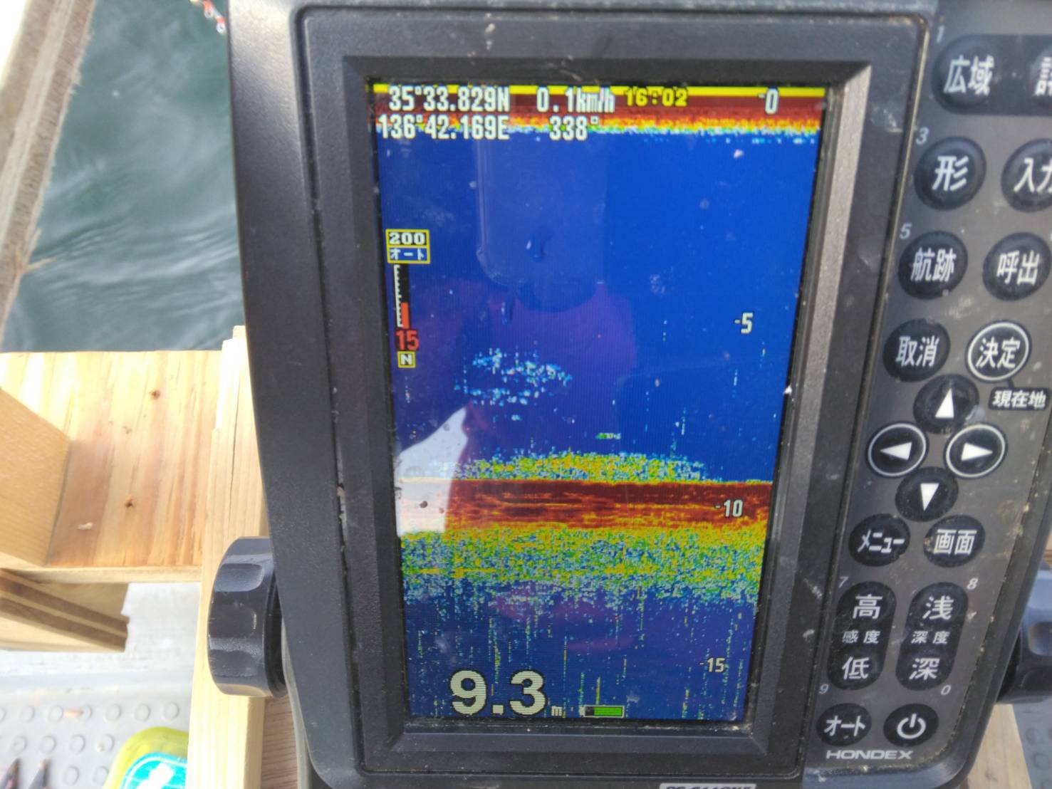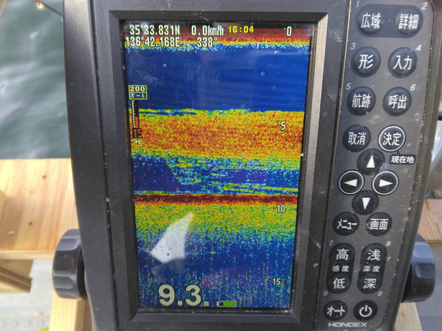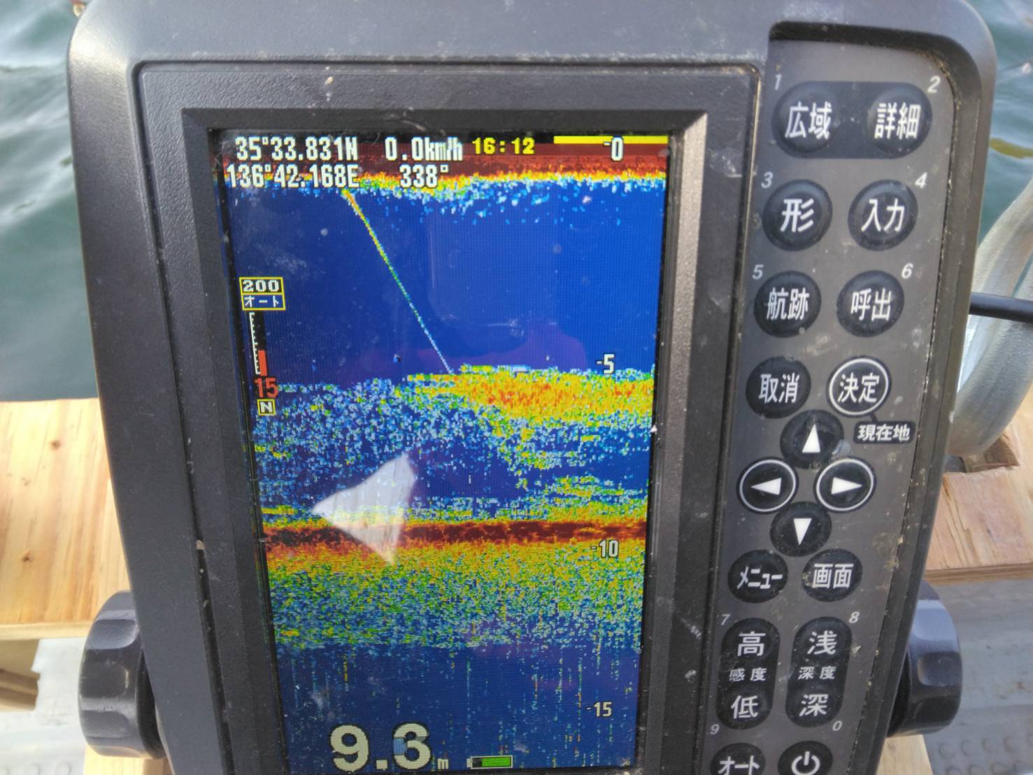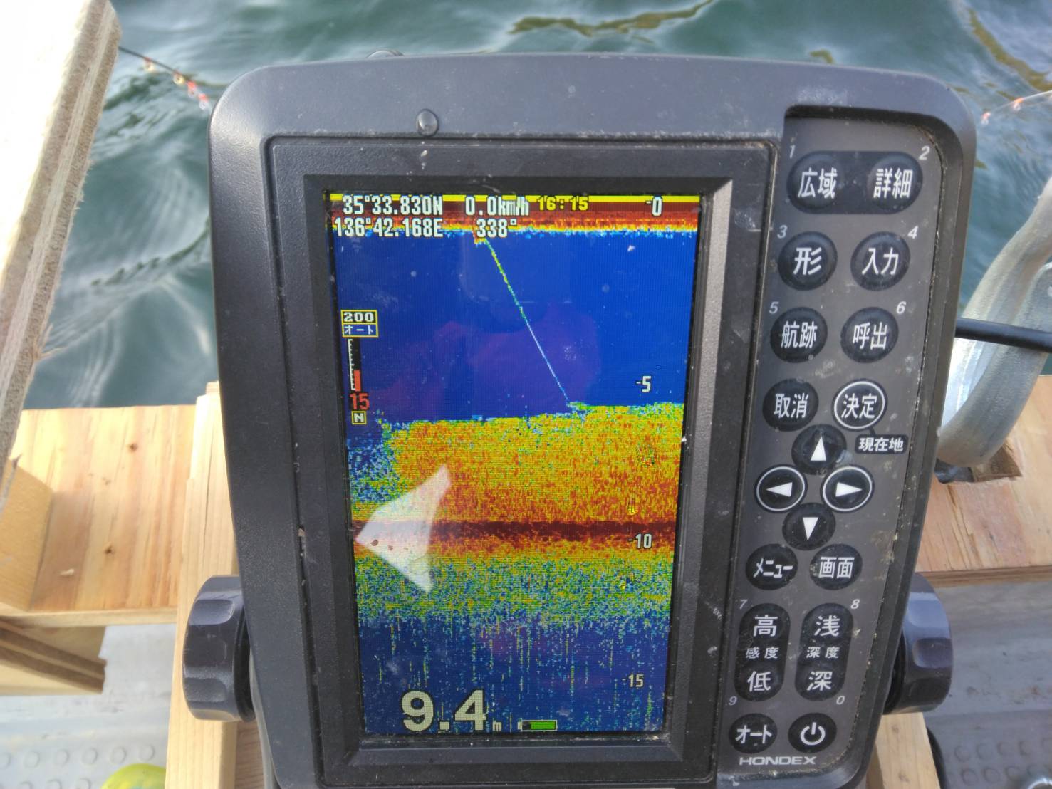 孝洞での反応 底付近には魚の反応が多くアタリは小さいですが掛かりました。