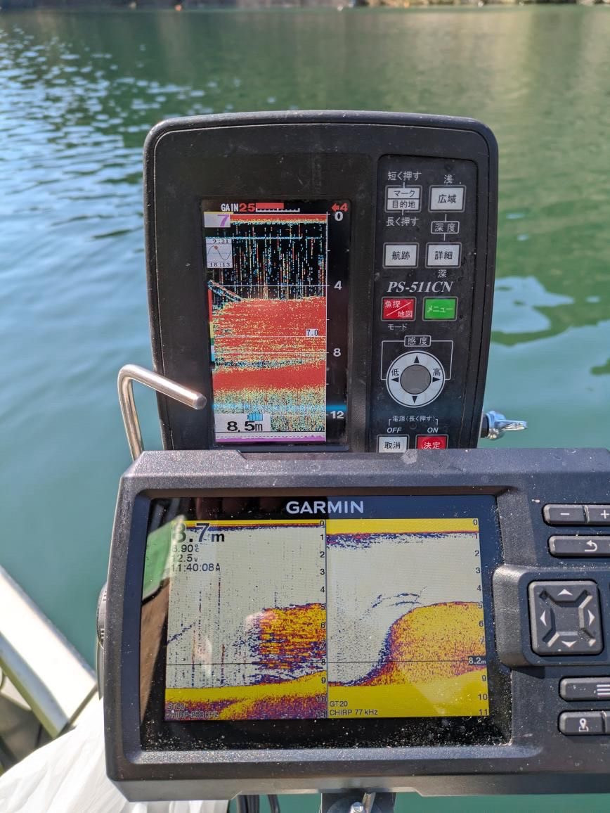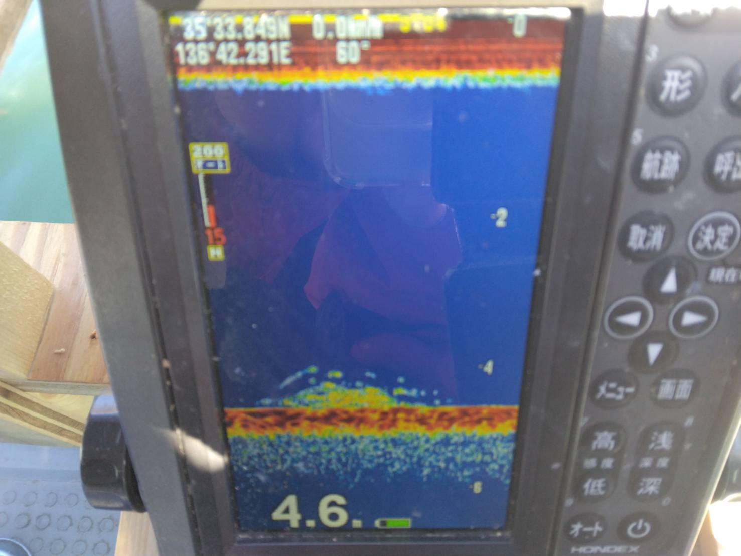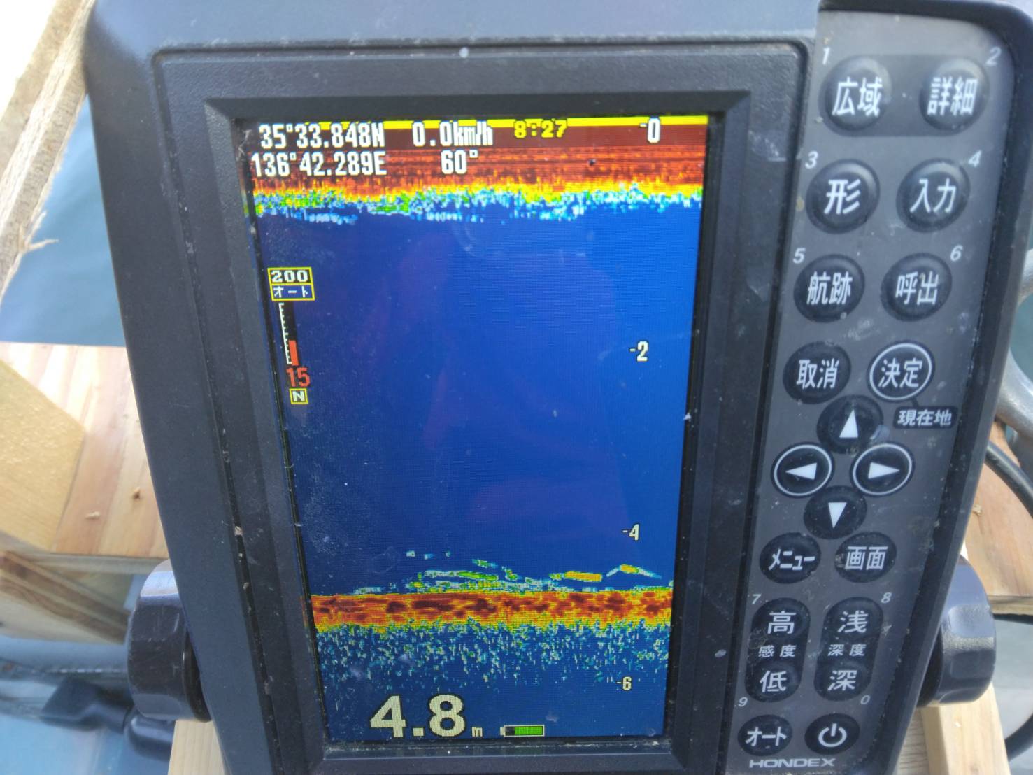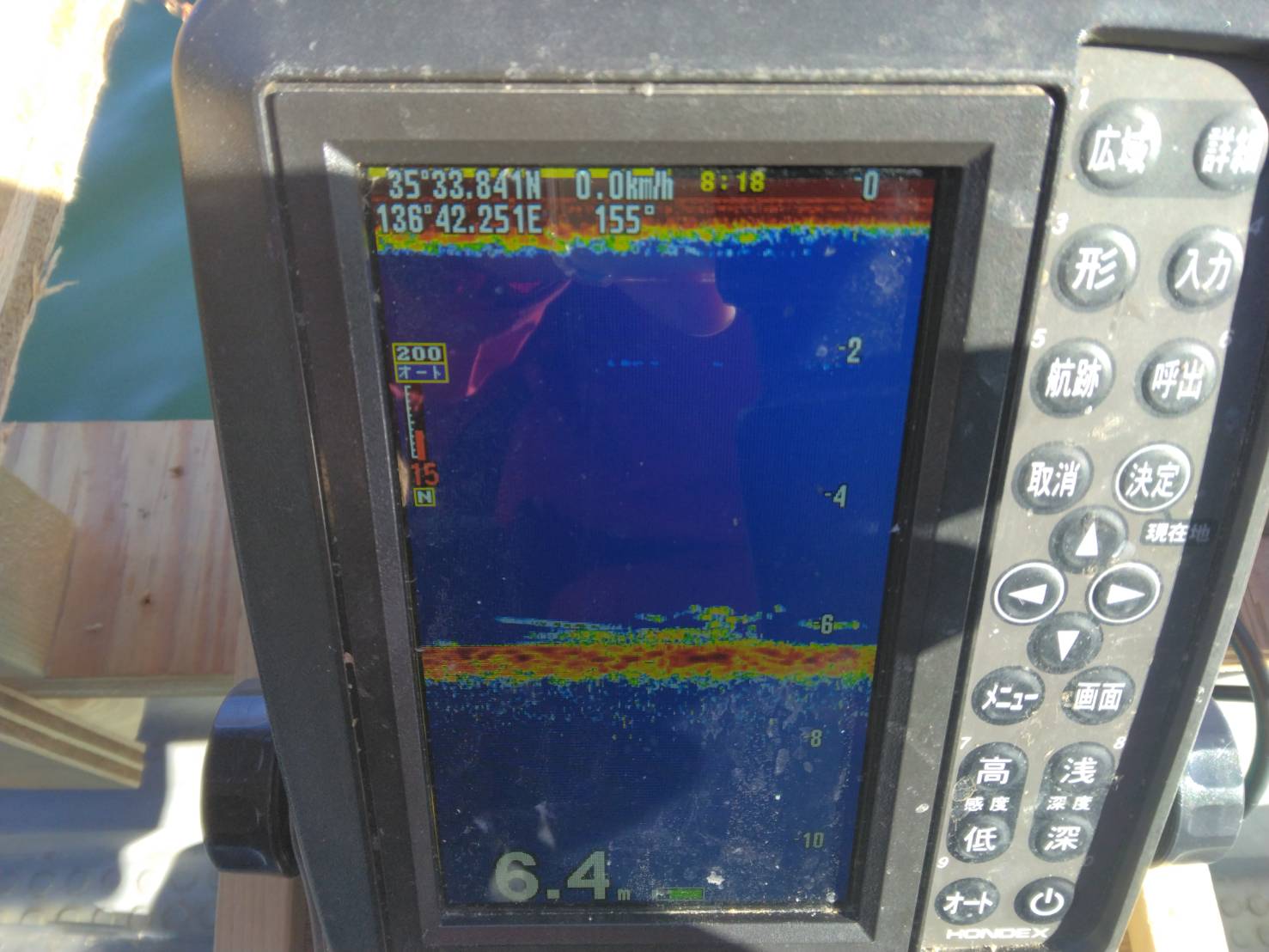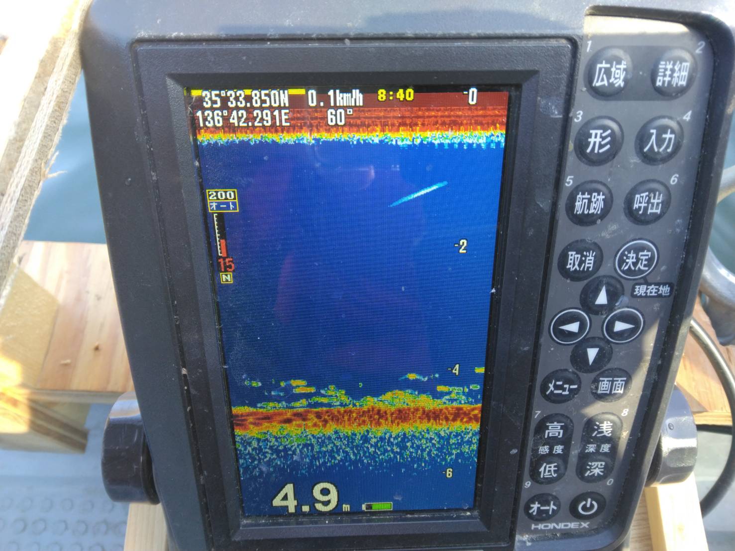 孝洞での反応 底付近には魚の反応が多くアタリは小さいですが掛かりました。