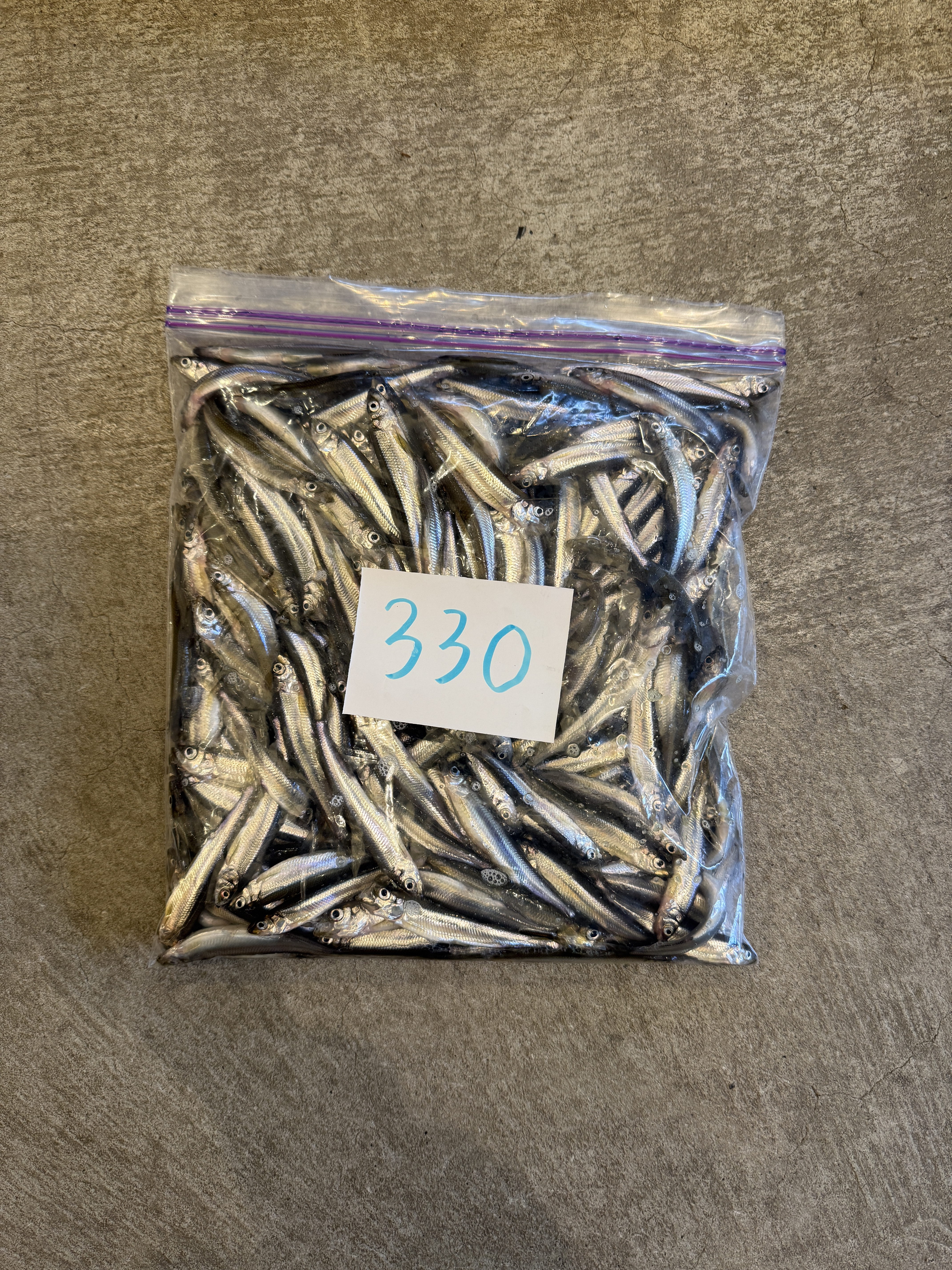 今日釣れたワカサギ 痩せて黒くなりウロコはザラザラで産卵後を覗えます。