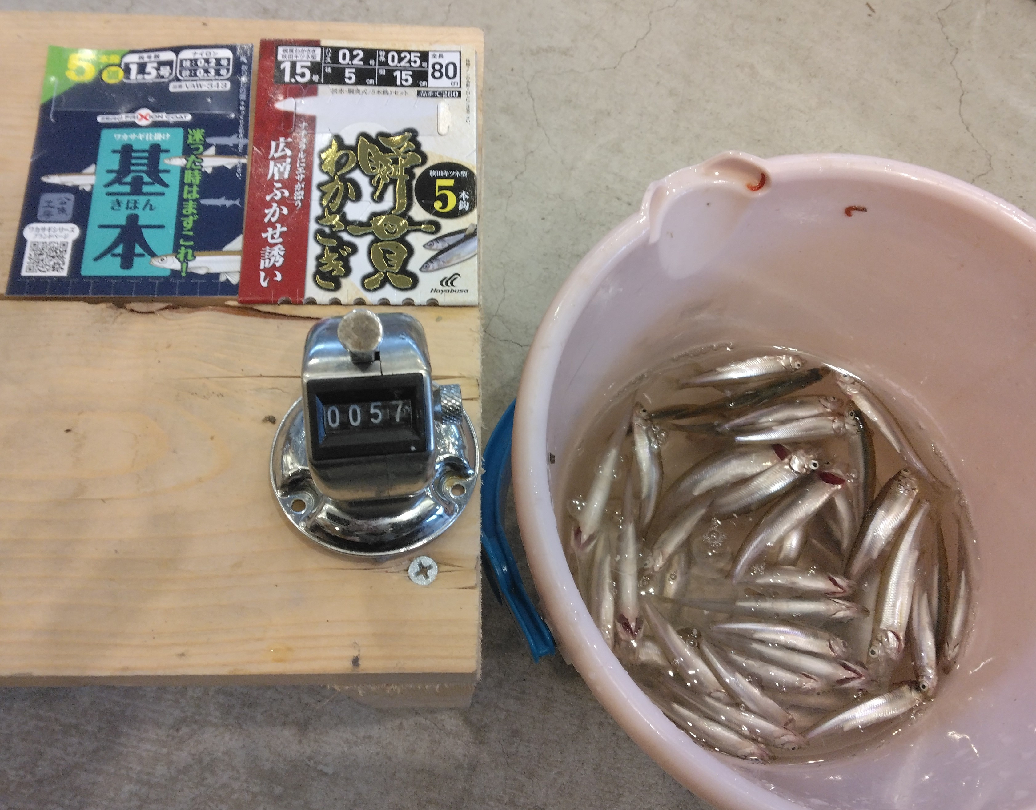 最近のオススメ仕方の一つがこれです。全長の短い仕掛けを2個つなぎ間の針を切って4本か5本針として使います。市販の仕掛けでも枝間の長い仕掛け(15~25㎝)が良く釣れていました。参考にして下さい。