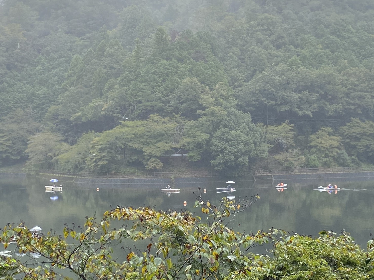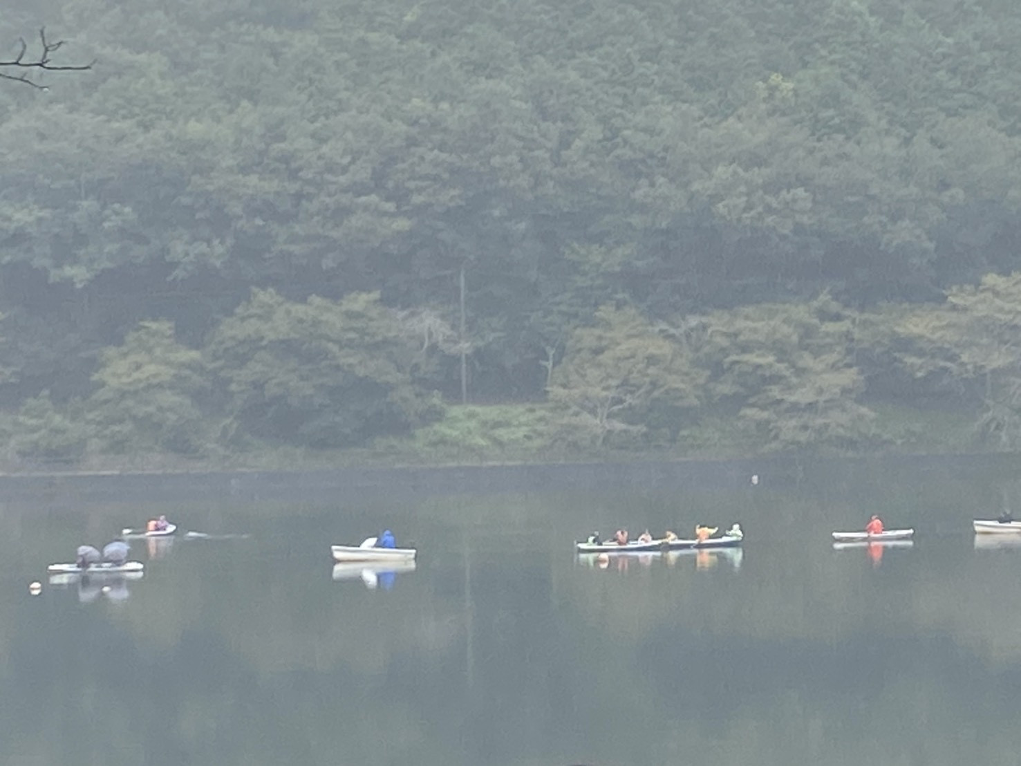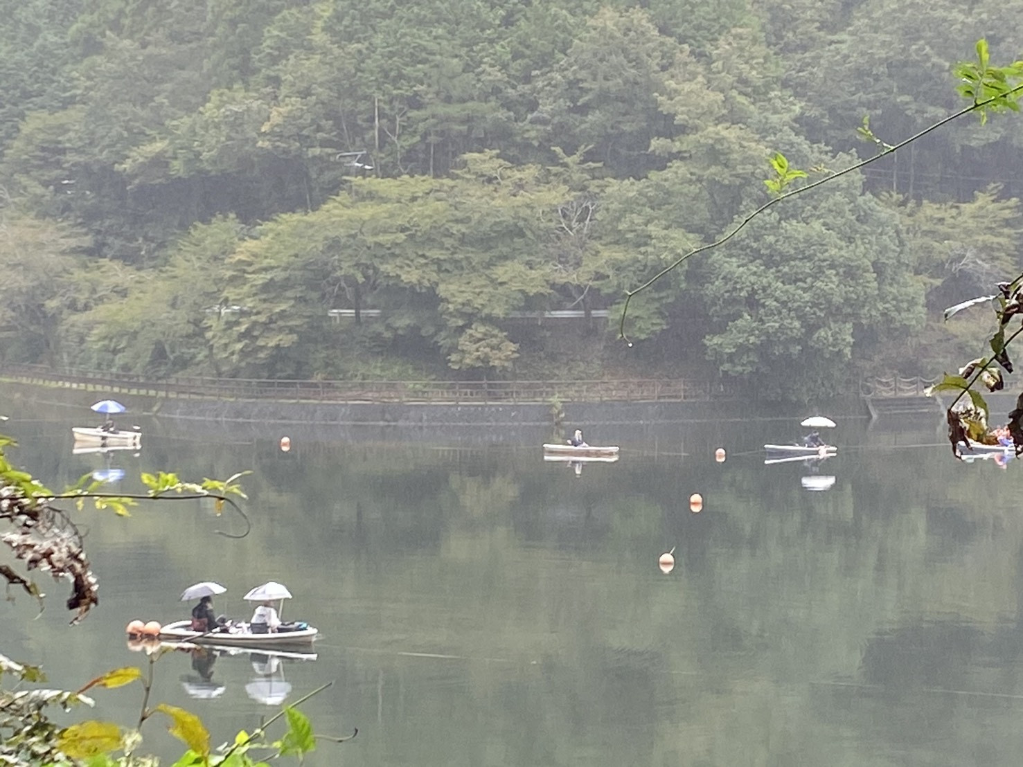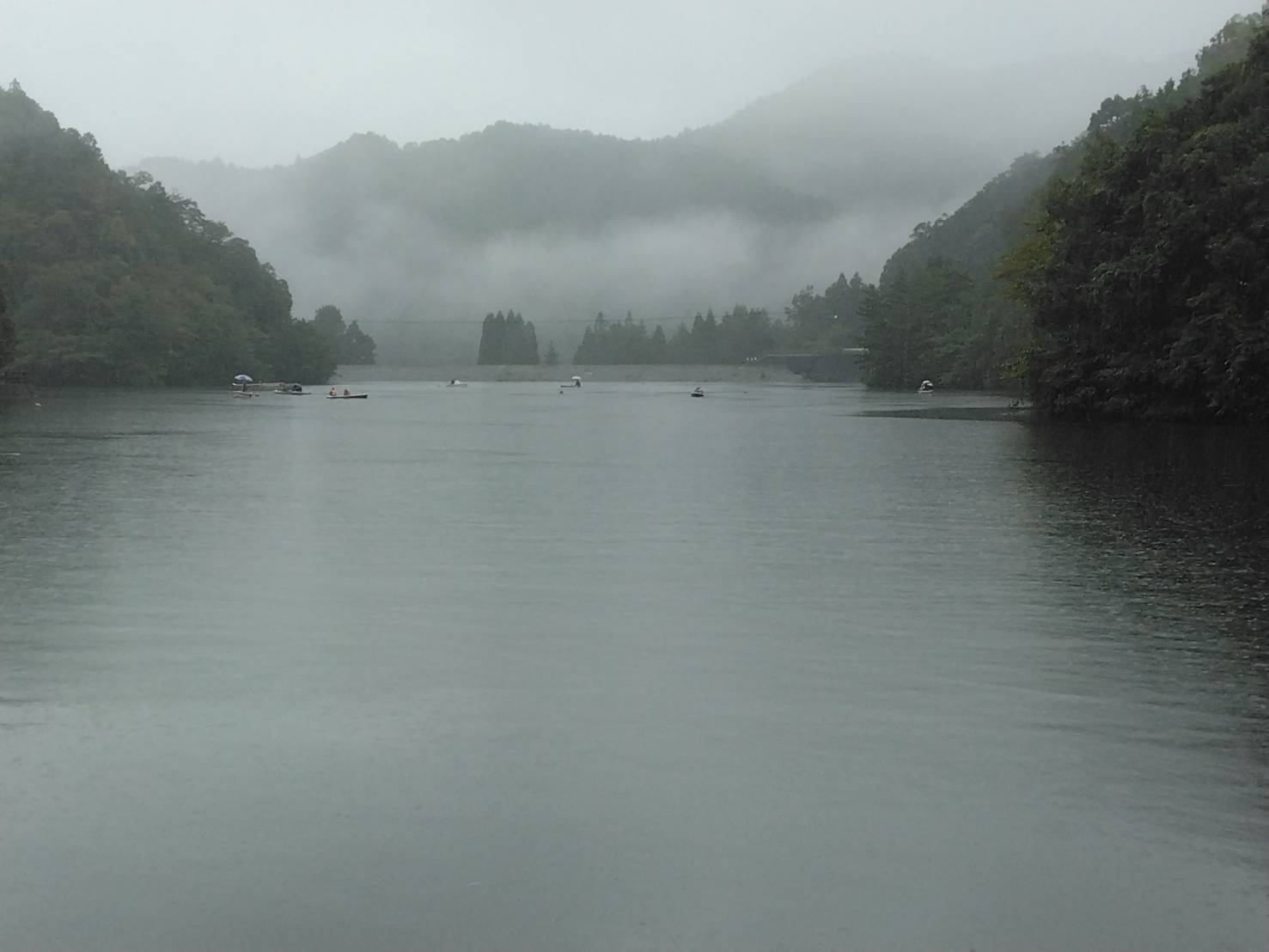 朝の伊自良湖 雨の中沢山のお客様が釣りに来てくれました。感謝です。