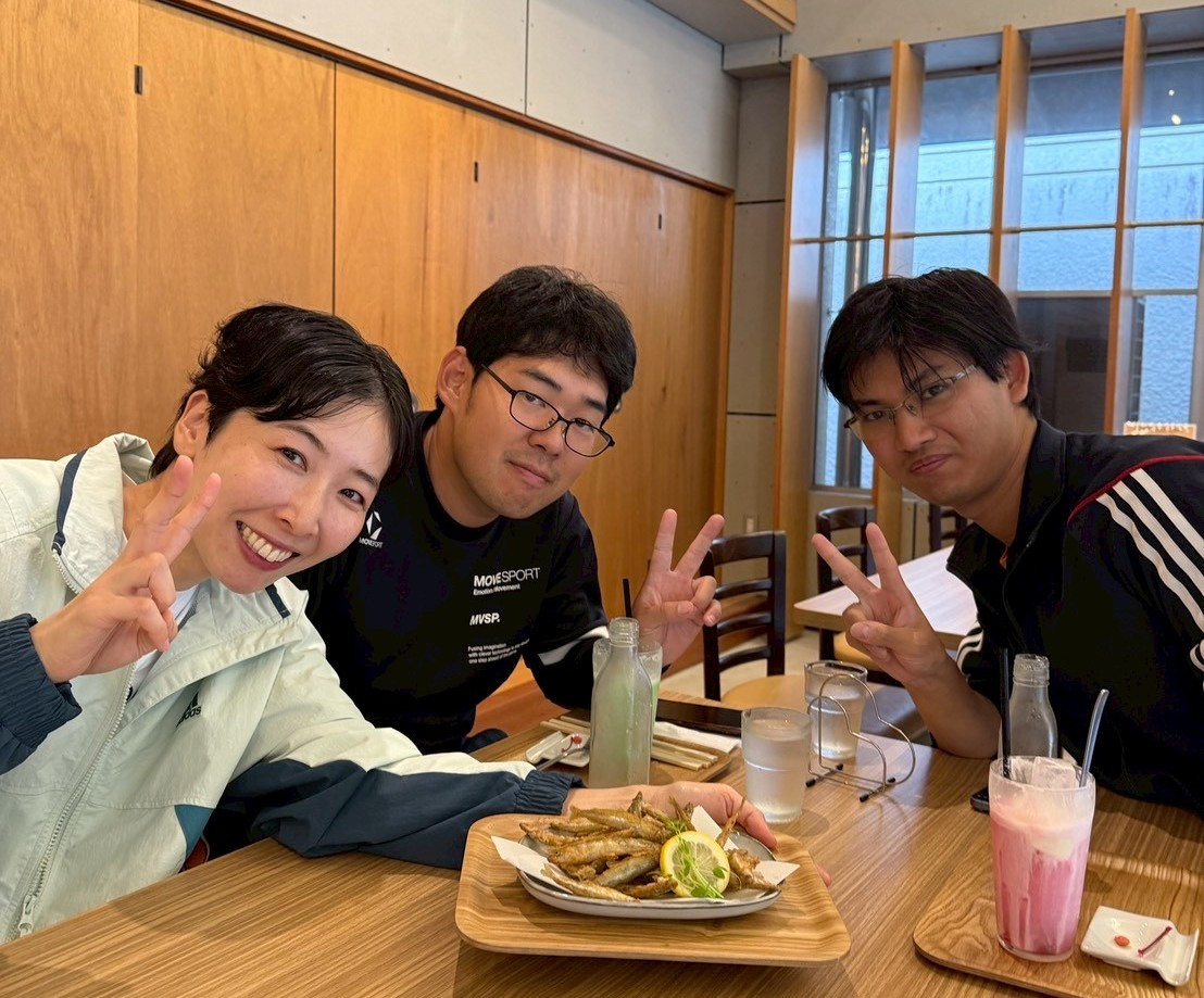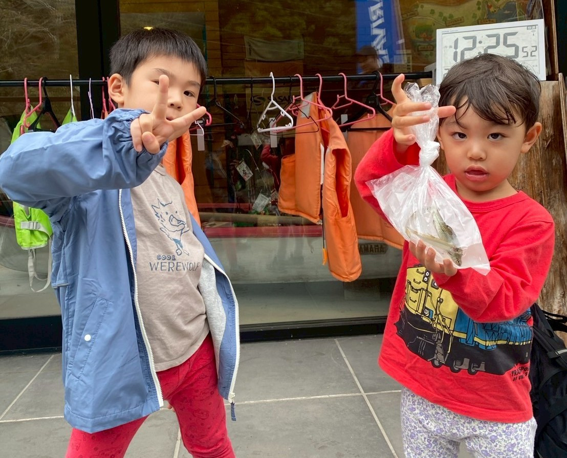 自分達で釣ったワカサギを唐揚げサービスで食べて頂きました。