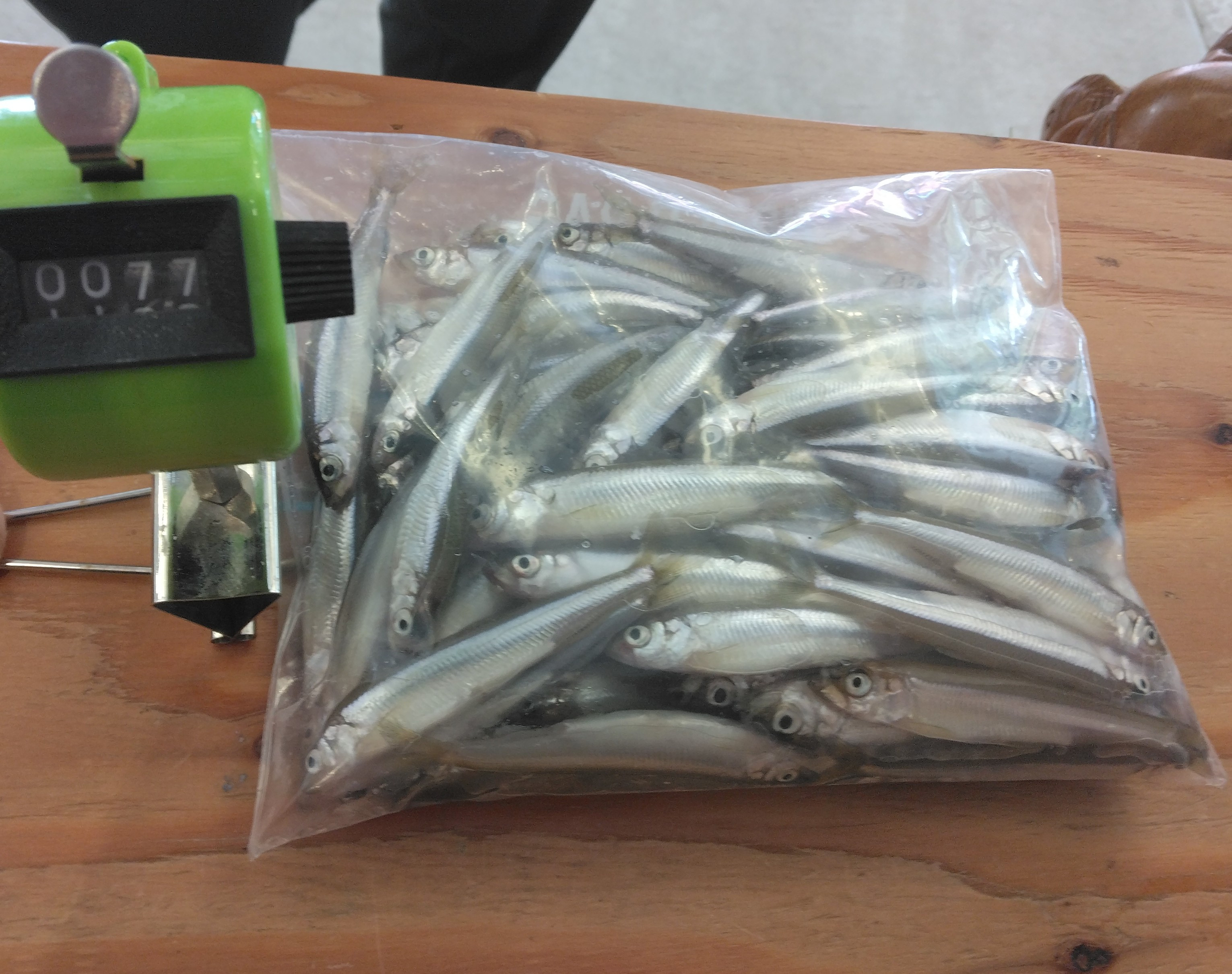 今日の竿頭は84匹でした。強風の中お見事です。他には82匹、78匹、77匹や40匹から60匹のお客様も多くみえましたが、今日は気温も上がり暑い日中でワカサギの喰いもイマイチな感じでした。明日からの雨や気温の低下に期待します。