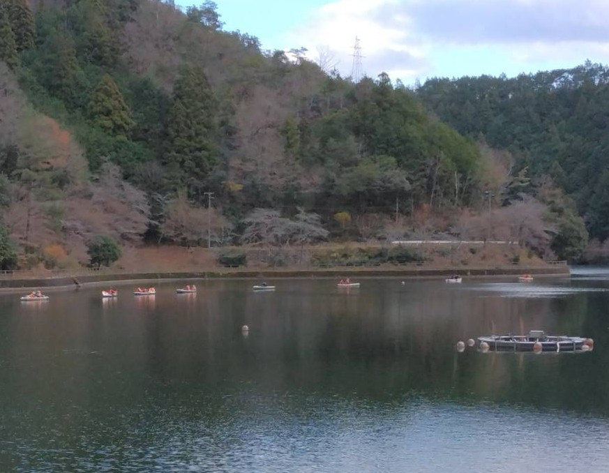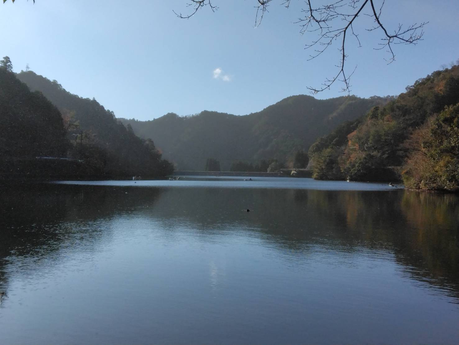 朝の伊自良湖 南の空は良く晴れていても北からの雲で雨がパラついています。