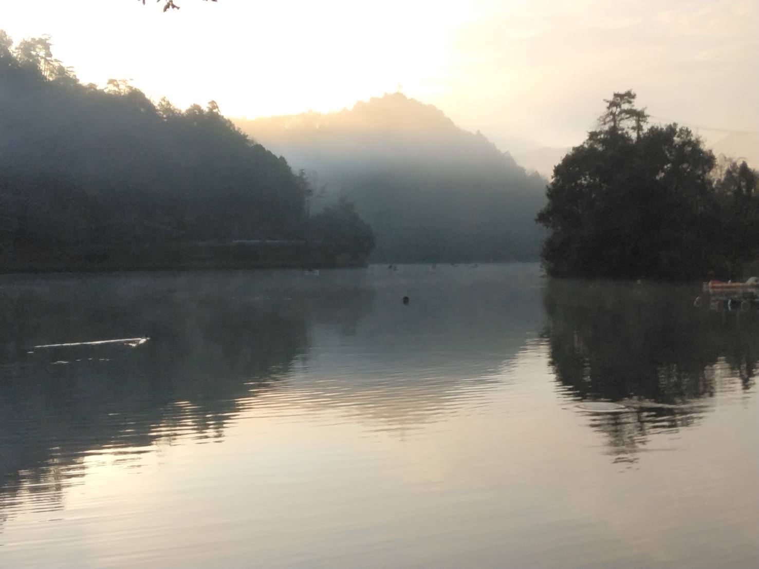 朝の伊自良湖 朝は第2階段付近からカーブミラーが人気でした。