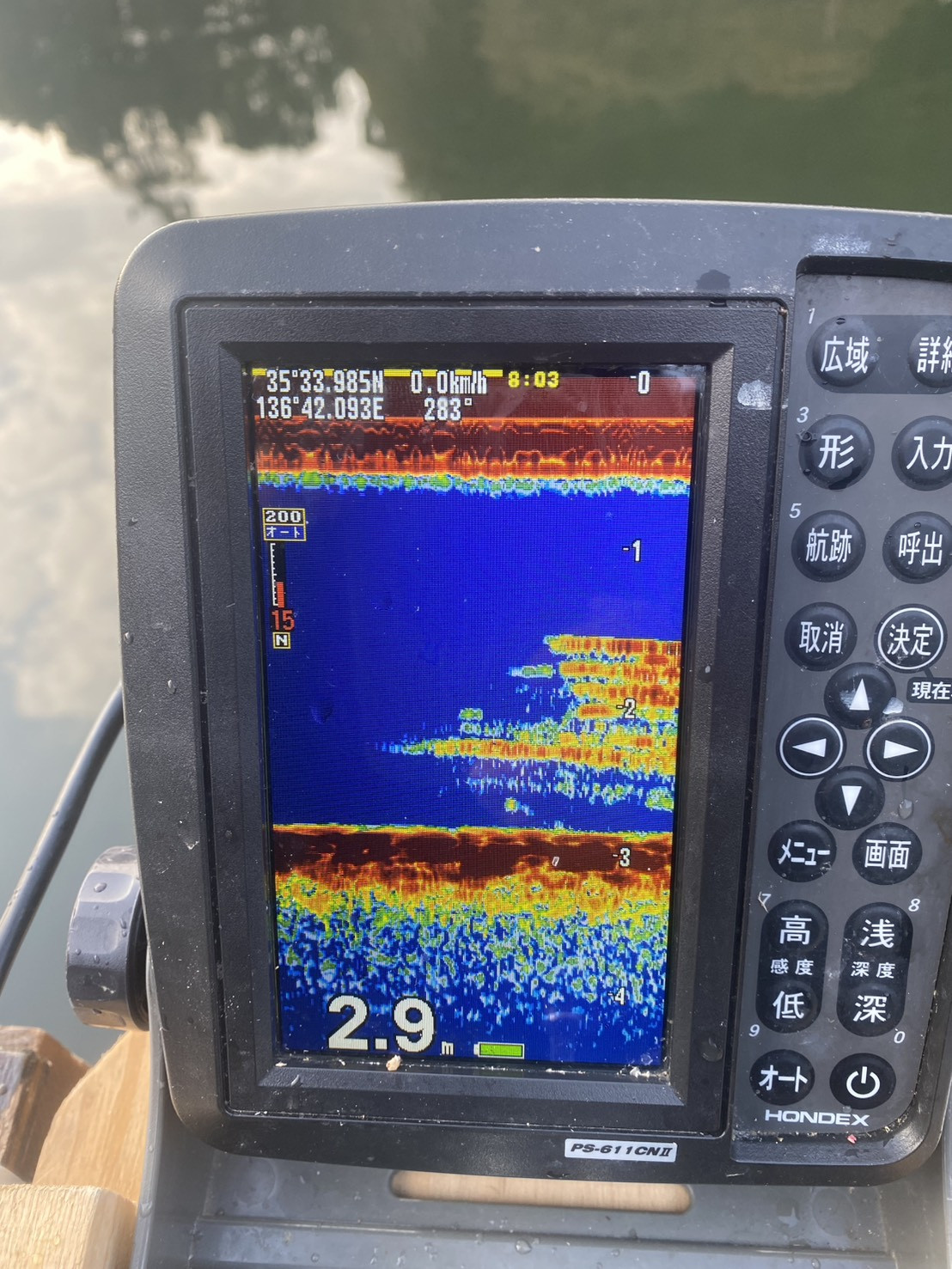 北ロープでの魚探の反応 この反応では釣れませんでした。