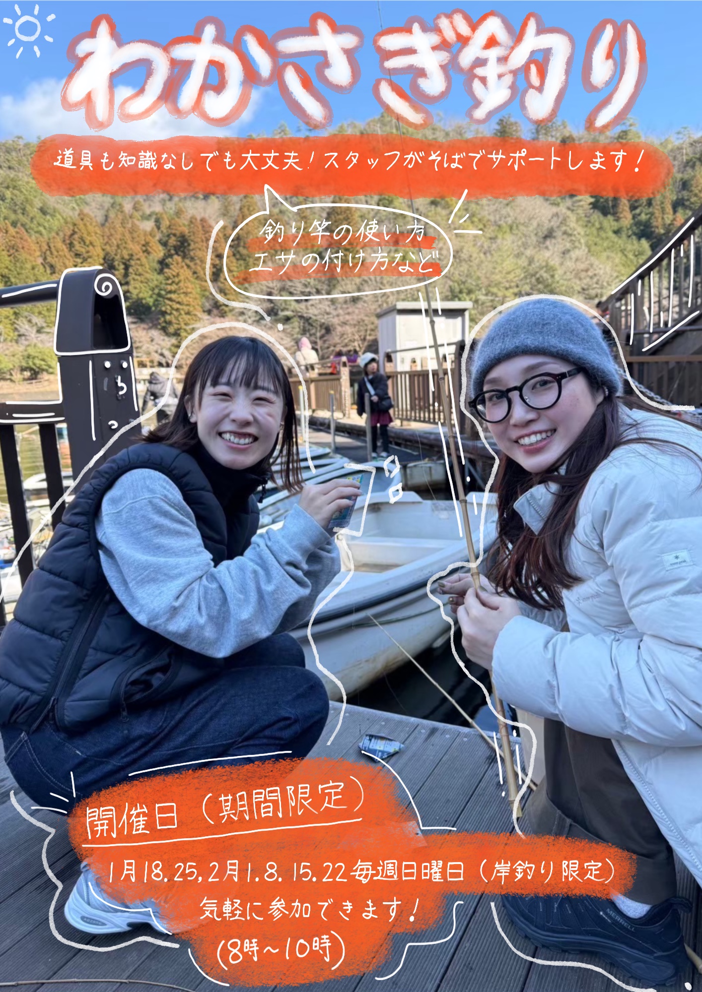 そこで、1月18日より毎週日曜、桟橋にスタッフが常設!釣りについてのサポートをいたします😌