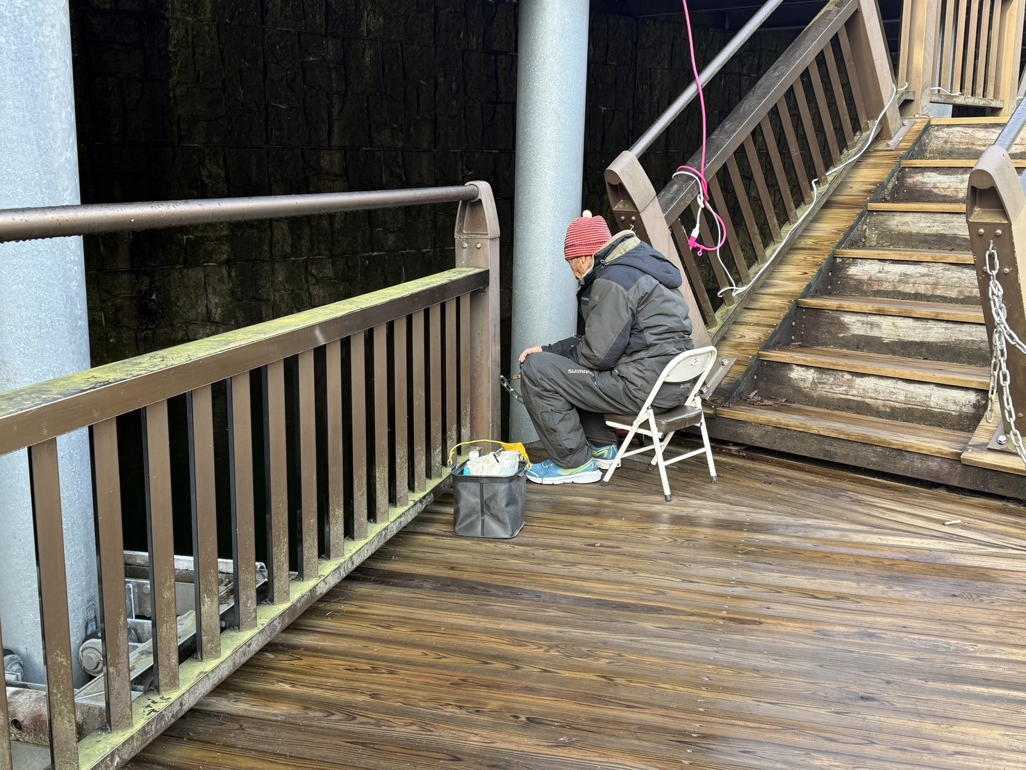今朝の気温は5度と春を感じるような陽気でしたがそこから気温は上がらず、風も吹き始めました。 桟橋は早朝で14匹。そこからは止まってしまいました。孝洞の川は完全に途切れてしましたままです。