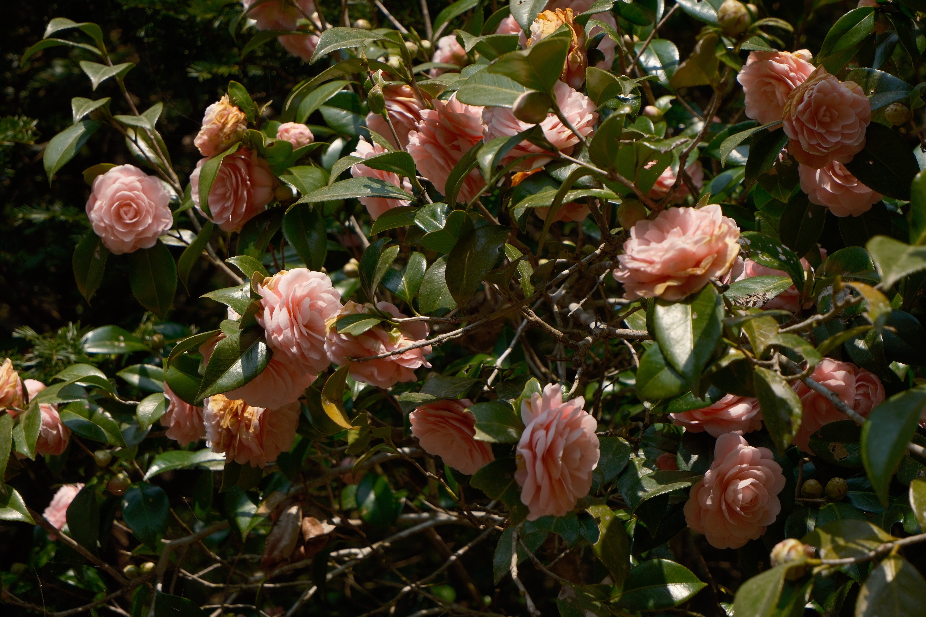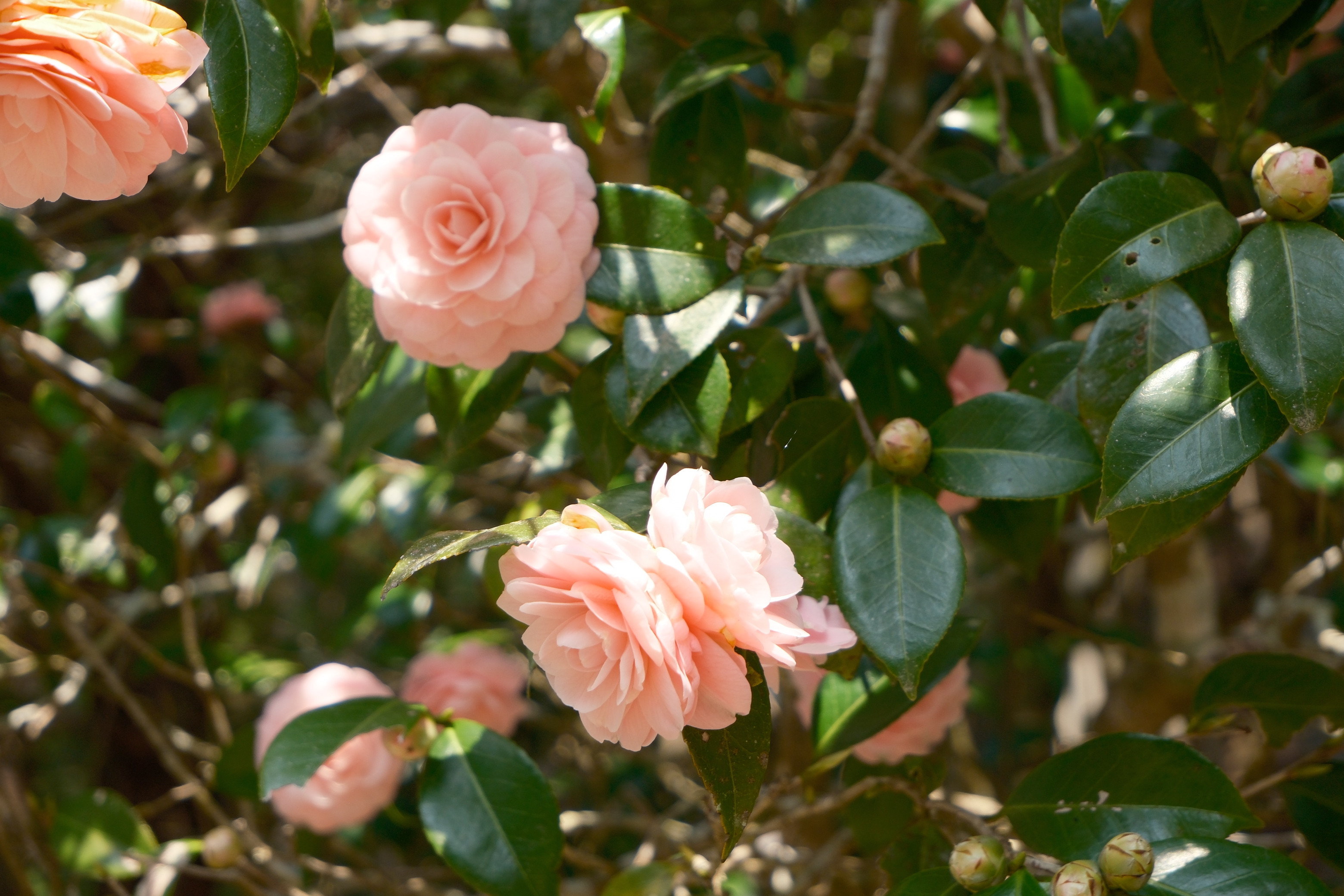 キャンプ場にはピンク色の椿も咲いていました