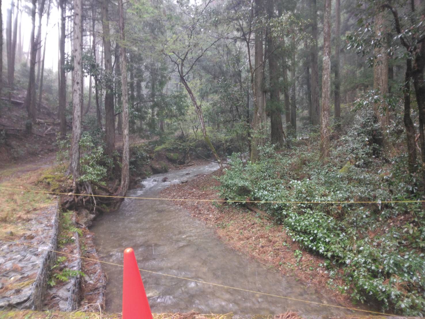 今回の雨は枯れいた孝洞の川も湖まで繋がりました。