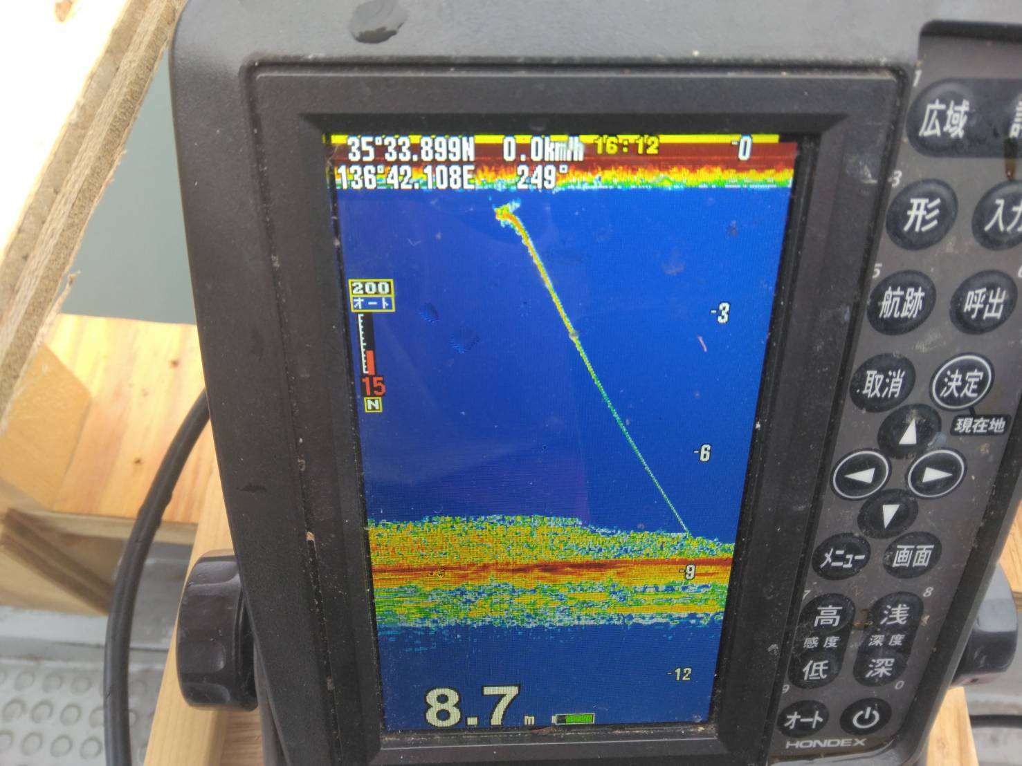 カーブミラーの魚探の反応。こんな状況が続いていてポツポツ掛かり29匹でした。