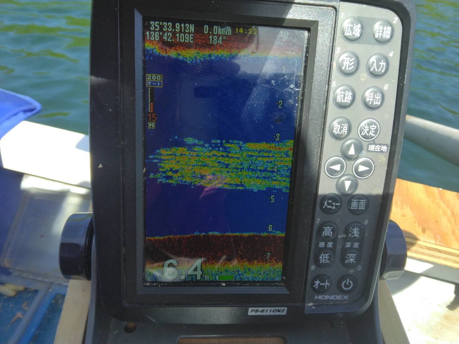 西ロープ中央付近の反応。こんな反応が20分から30分に1回入る感じでアタリも少なかったです。