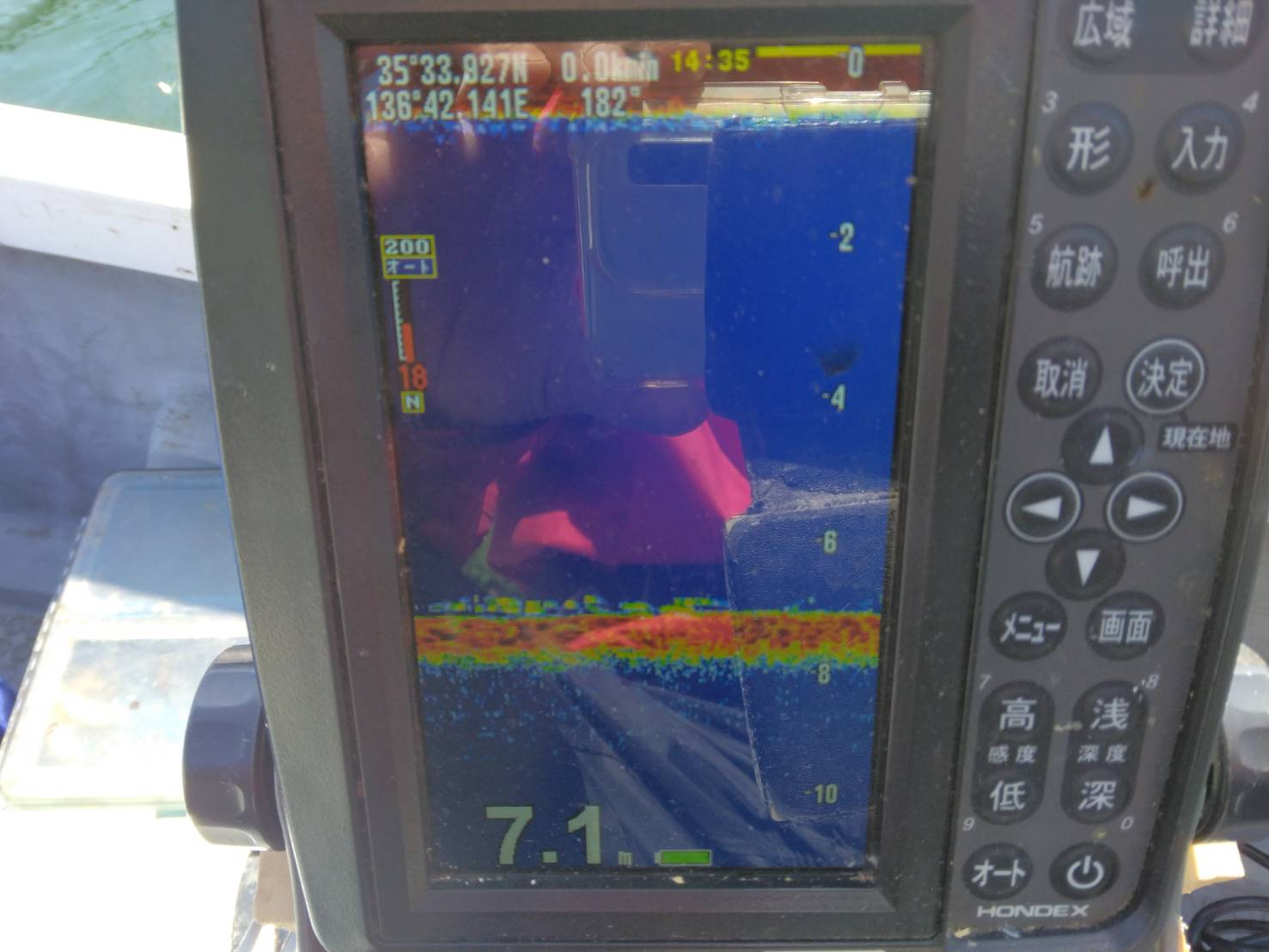 今日の調査は第2段階からカーブミラーです。魚探の反応は第2段階付近です。でも掛かったのはオイカワでした。