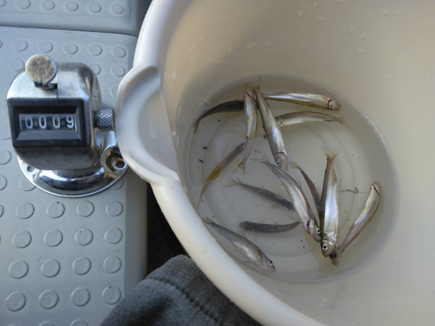 今日の調査結果は9匹でした。お客様でも9匹の方がみえて二桁釣果にあと一歩届きませんでしたので明日は目指せ二桁です。オイカワ釣りは好調で今日は女性のお客様で66匹の釣果がありました!お見事です。オイカワ釣り、ワカサギ釣り共に明日も皆さんの釣果に期待します。