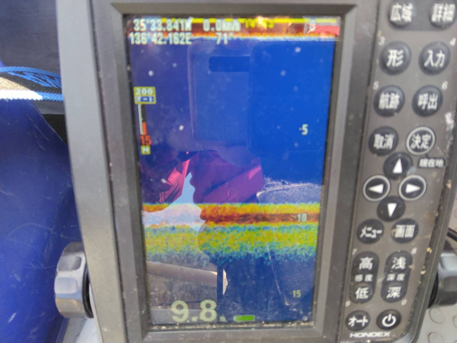 もっと厚い群れも何度か入りましたが写真を撮れなかったのが残念です。今日も南ロープには良い感じに群れが入り掛かりました。ただ朝マズメの時間が短く今朝は7時半頃に釣れなくなったとの事でした。その後は群れが入る所だけ釣れる感じです。桟橋は朝は魚が沢山入っているのですが7時頃には全く居なくなり釣れていませんでした。