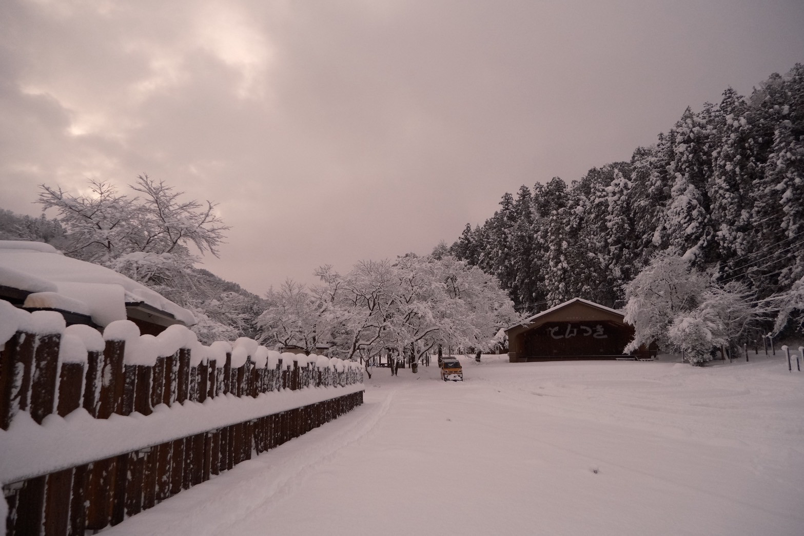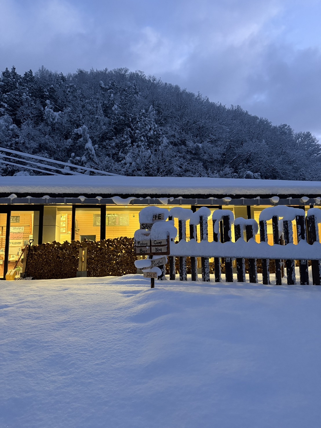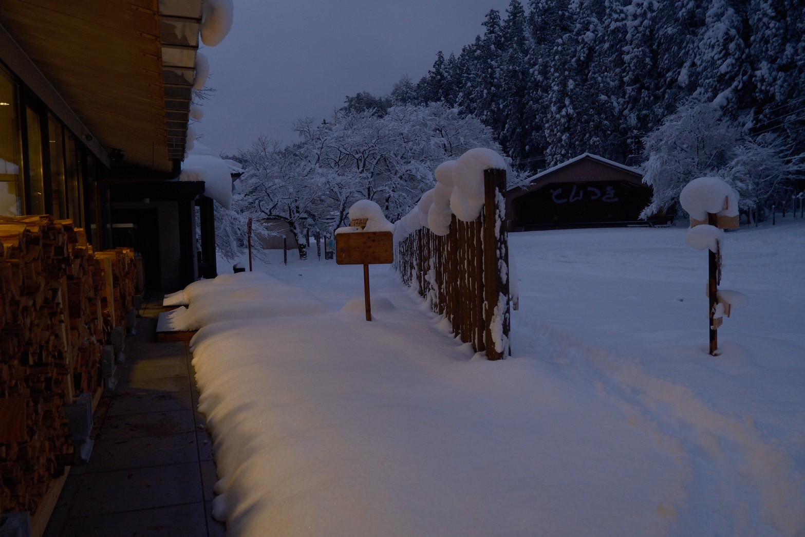 6:30ごろ現在の様子になります。現在雪は降っておりませんが30cmほどの積雪が見られます。お越しの際はお気をつけてお越しください。