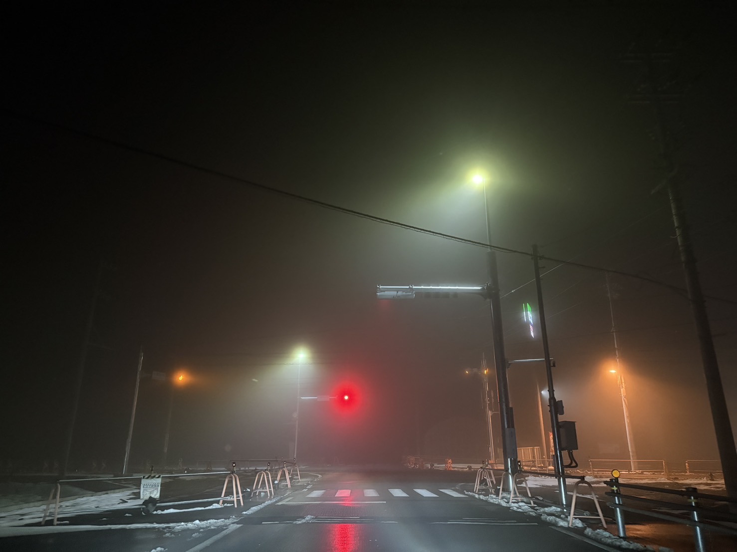 明日は濃霧が予想されております。路面の凍結および霧の影響が考えられますので、どうぞお気をつけてお越しくださいますようお願いいたします。 ファミリーマート 山県伊自良店付近の様子です。
